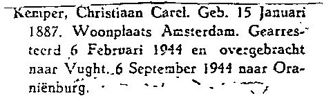 Bij het “Mauermuseum – Museum Haus am Checkpoint Charlie” liggen boeken waarin men heeft bijgehouden wie er in de concentratiekampen van het door Rusland bezette gedeelte van Duitsland zijn omgekomen. Daarin is vier keer de naam van Christiaan Carel Kemper, twee keer Carel met een C en twee keer met een K geschreven. Alle keren met het goede geboortejaar. Drie keer overleden op 29 augustus 1945 in ‘Buchenwald’ en keer nog in leven op die datum, maar overleden in ‘Sachenhausen’. Onderzoek door mensen bij ‘ Sachsenhausen’ geven te kennen dat zij er zeker van zijn dat hij daar niet is overleden. Kortom het blijft een raadsel. Met de enige houvast die er is gaan we er dan maar vanuit dat hij daadwerkelijk in Buchenwald is overleden.
