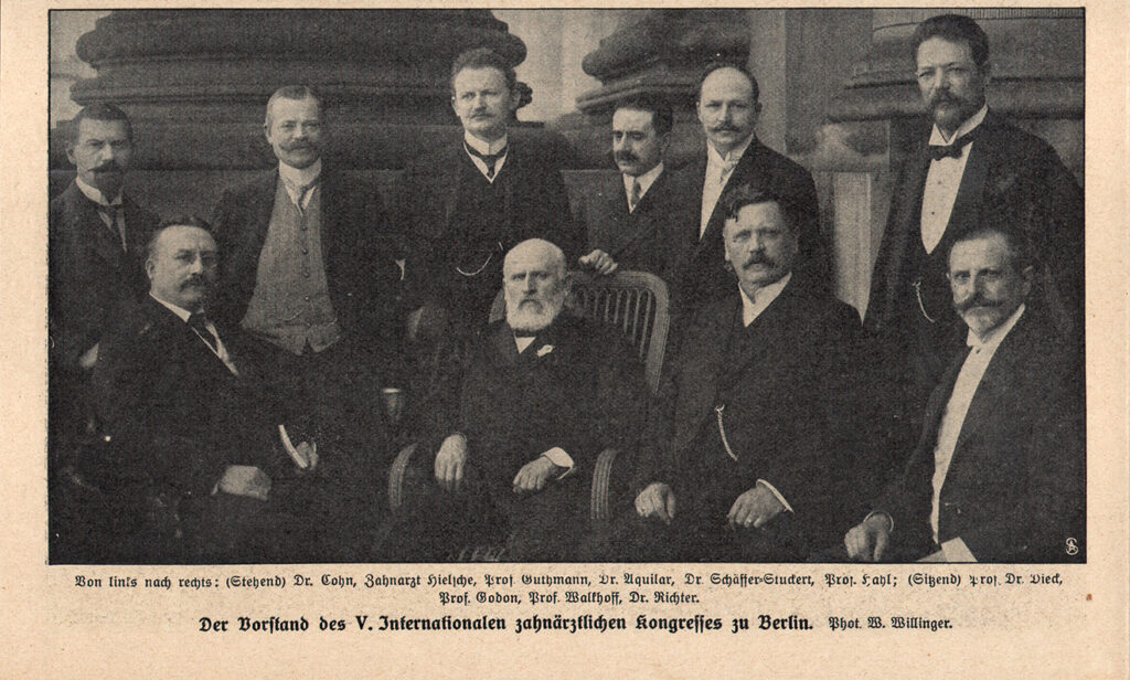 Announced by the FDI on December 4, 1906 the 5th International Dentists Conference would be held in Berlin in 1909. The Central Association of German Dentists received mandate from FDI to organize this event. The Central Association established an Organization committee in which Konrad was appointed as Secretary. He was responsible for all communication regarding the conference towards dentists all over the world and during the week of the conference, a daily newsletter was published in three languages German, English and French. Konrad was the editor of this newsletter. In 1909 the 5th International Dentists Conference took place from 22 to 28 of August in Berlin.