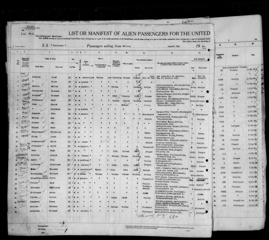 In 1926 the 7th International Dentists Conference was held from 23 to 27 August in Philadelphia, United States. Were many dentists from all over the world attended. Similarly, Konrad with his wife Marianne traveled to the United States. A newspaper article from the US “The Brooklyn Daily Eagle” and a list of passengers from New York above confirm their presence.