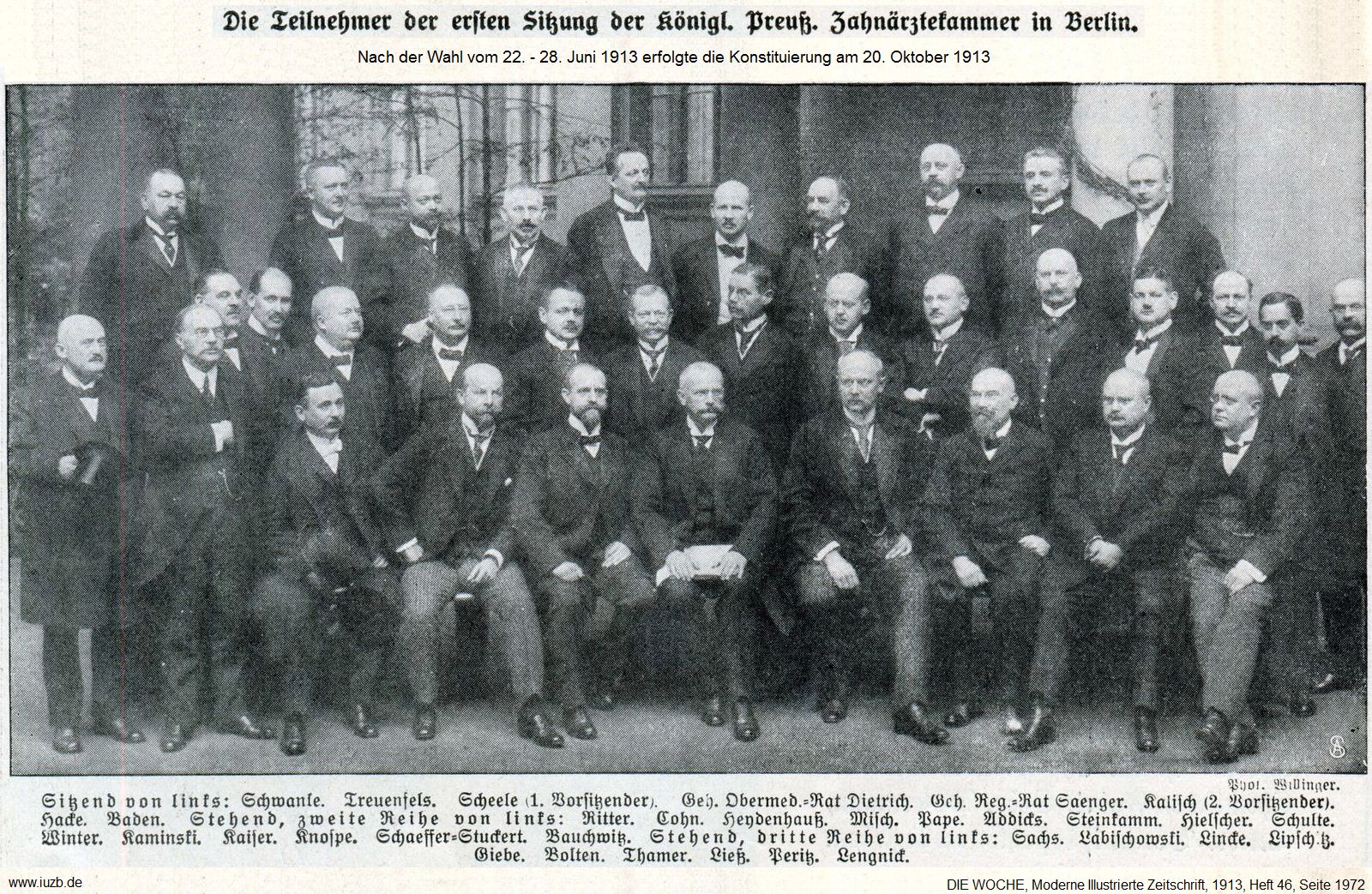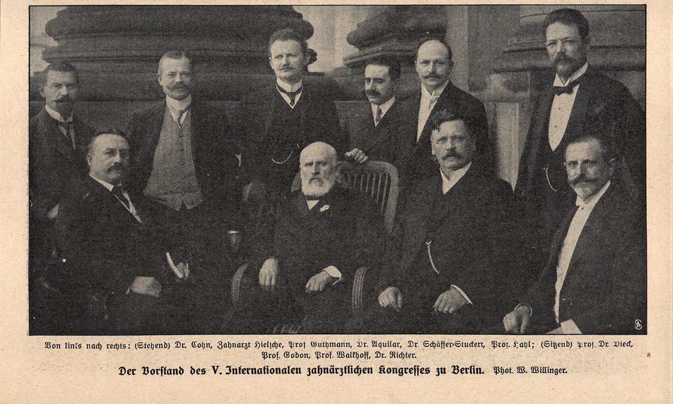 Left-to-right sitting: Vice-President (organisation): Prof. Dr. Dieck, Founder FDI: Prof. Godon, President (organisation): Prof. Walkhoff, President (local): Dr. Richter. [source: vm14]