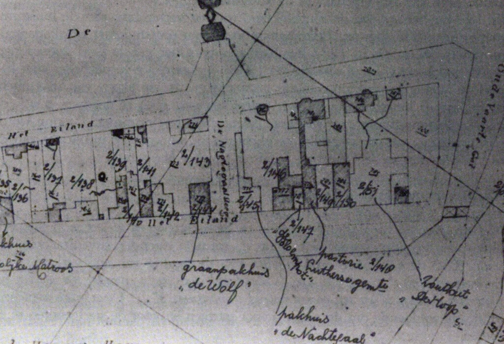 Rond 1826 zijn steden en dorpen opgedeeld in wijken en hebben huizen een nummer gekregen maar nog geen straatnaam. Bijvoorbeeld Wijk Z Nummer 14 of Wijk 3 Nummer 32. Transport van onroerende goederen ging rond diezelfde periode over naar Notarissen en dus moeten we vanaf die tijd verder zoeken in Oud Notariele Archieven. Bij de invoering van de Burgerlijke stand in 1812 zien we ook dat bij geboorte, huwelijks en overlijdensaktes vaak het woonhuis van iemand wordt beschreven. Daarmee zijn ook die aktes een belangrijke informatiebron geworden. Zo kan uit een overlijdensakte van een zoon van het gezin Theophilus Jacobus Tinkelenberg & Geertruida Kraaijkamp (weduwe van Jan Cornelis Smit, vorige eigenaar van het pand) aflezen “echtelieden wonende op het vooreiland W2 No 140”.